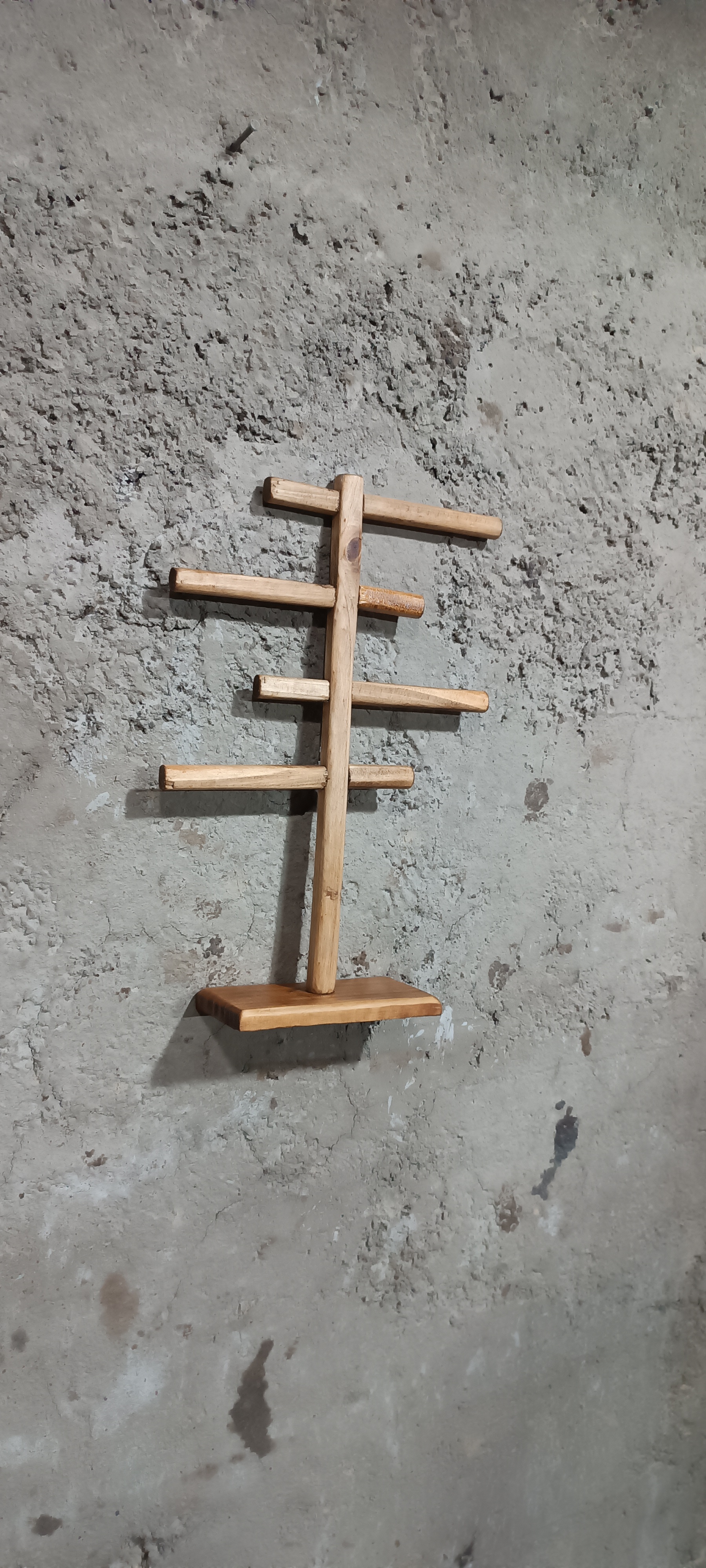 استند جواهرات با طرحی منحصر به فرد و جذاب ساخته شده گزینه مناسبی برای سازماندهی جواهرات از جمله گردنبند و دستبند و غیره می باشد. که می تواند وسیله مناسبی برای جلوگیری از گم شدن وسایل کوچک و با ارزشتان باشد و اینکه نظم خاصی به روی میز آرایش شما می دهد.این محصول کاملا به صورت دستساز می باشدو تمام چوب است.
