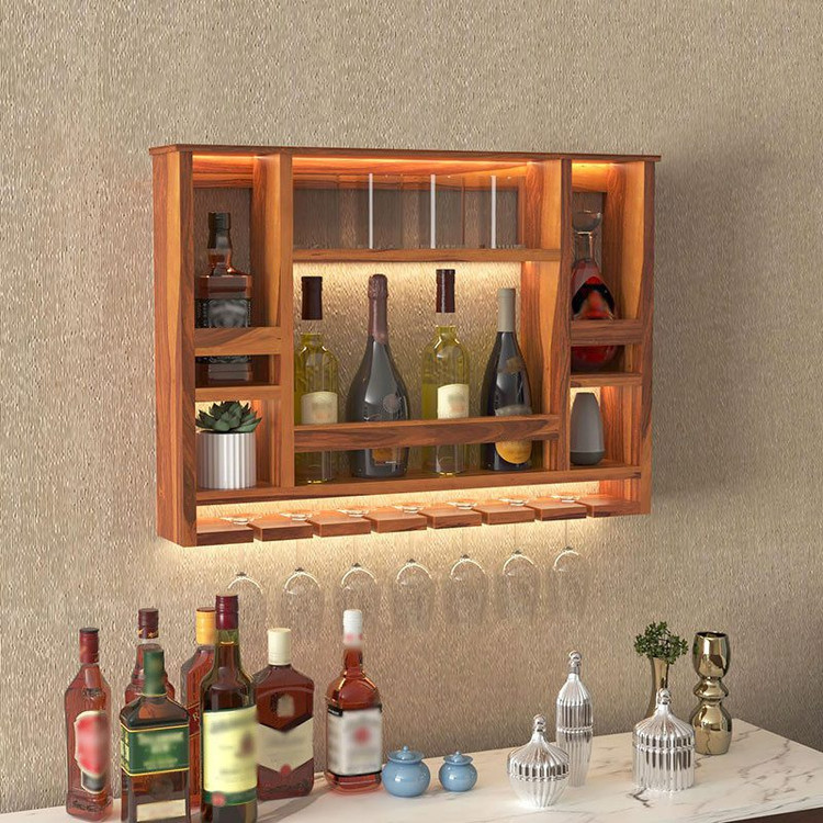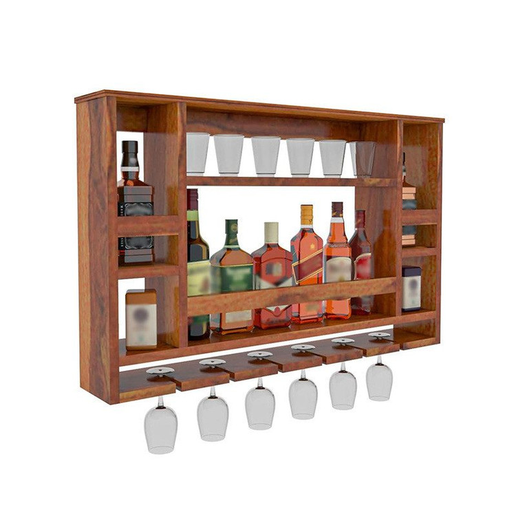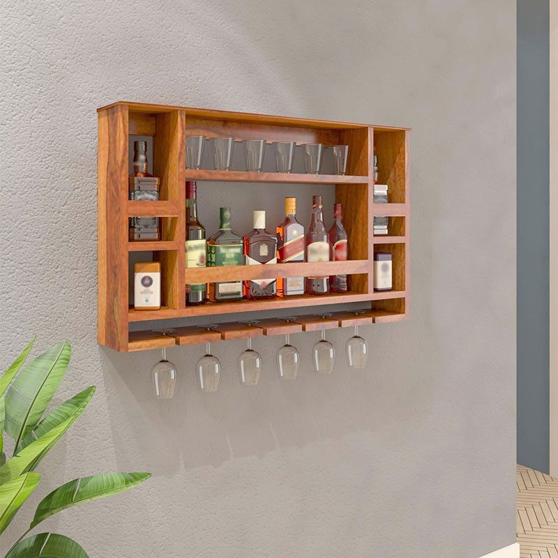 شلف بارآقای نجار دارای آویز گیلاس و قفسه بطری و ادویه و قوطی قهوه که در قسمت بالای کابینت و میز بار یا میز قهوه ساز قابل نصب است.