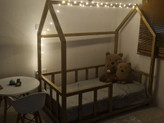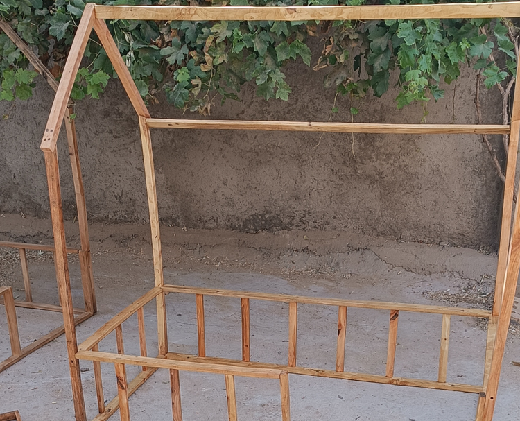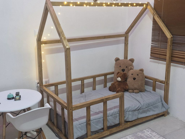 مدل خانه مناسب برای تشک نوزاد با ابعاد 130*70 می باشد. جنس چوب کار شده در این محصول چوب های طبیعی ضد آب وقابل شستشو می باشد و سطح آن کاملا سنباده کاری شده و صیغلی می باشد . براق نمودن کار و محافظت چوب در تمامی رنگ ها اجرا می شود.تخت به صورت باز ارسال شده و نصب آن بسیار آسان می باشد. تشک شما هم درون کار روی زمین قرار میگیره