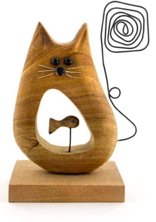 Wooden Cat Figurine