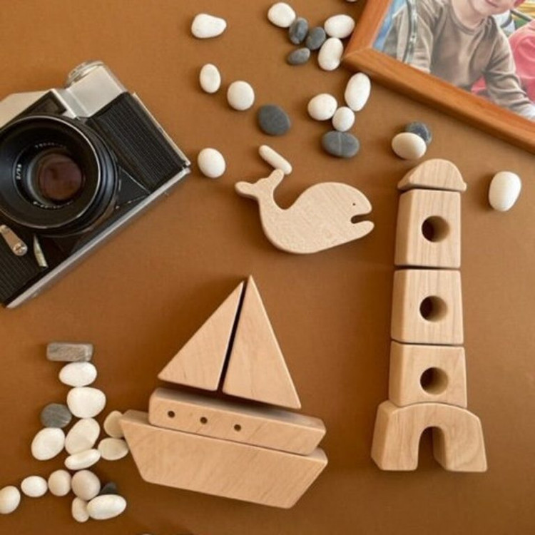 شامل حیوان دریایی چوبی و یک قایق و یک فانوس دریایی