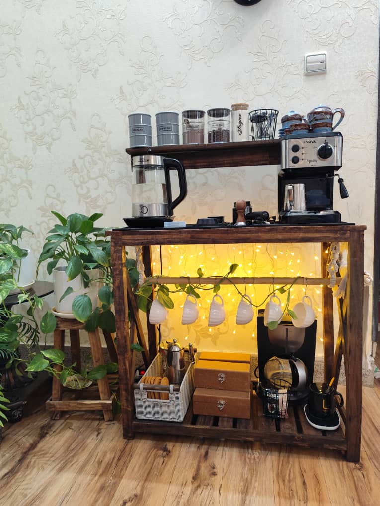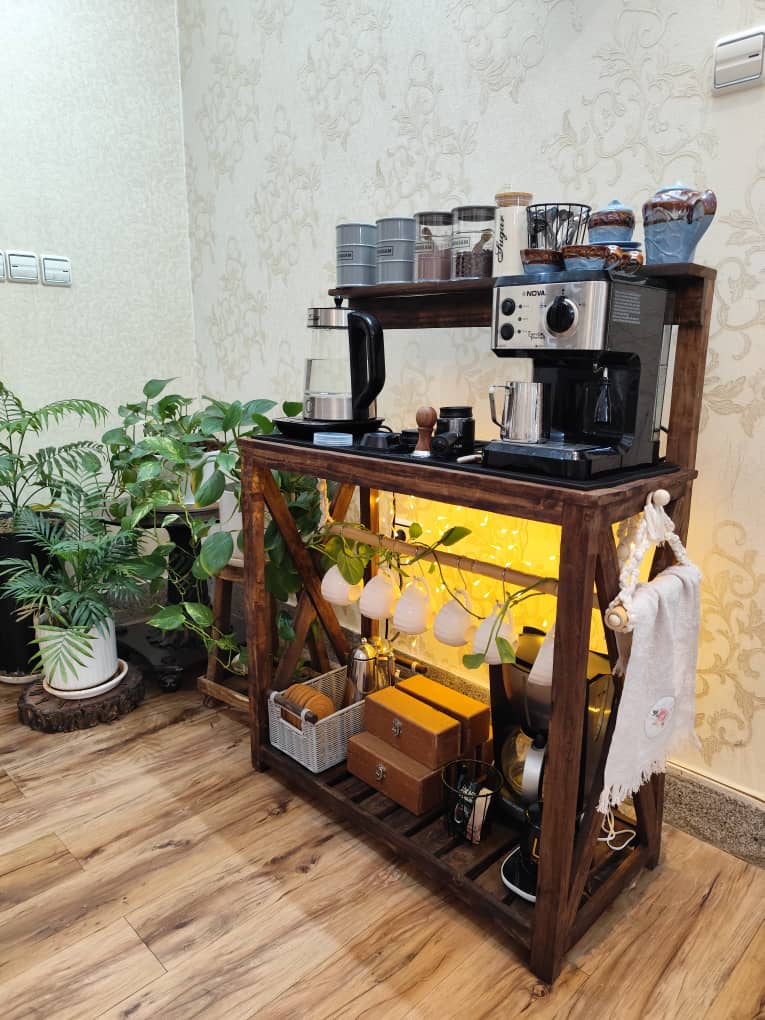 کنسول کافی بار خانگی چوبی آقای‌نجار مدل استند کافی بار